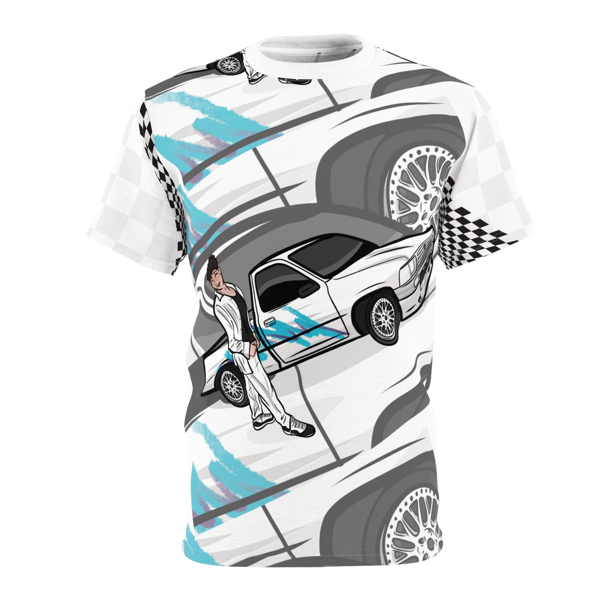 Stylish Racer Graphic Tee | AOP Unisex Cut & Sew T-shirt for Car Lovers, Gifts for Men, Streetwear, Automotive Design